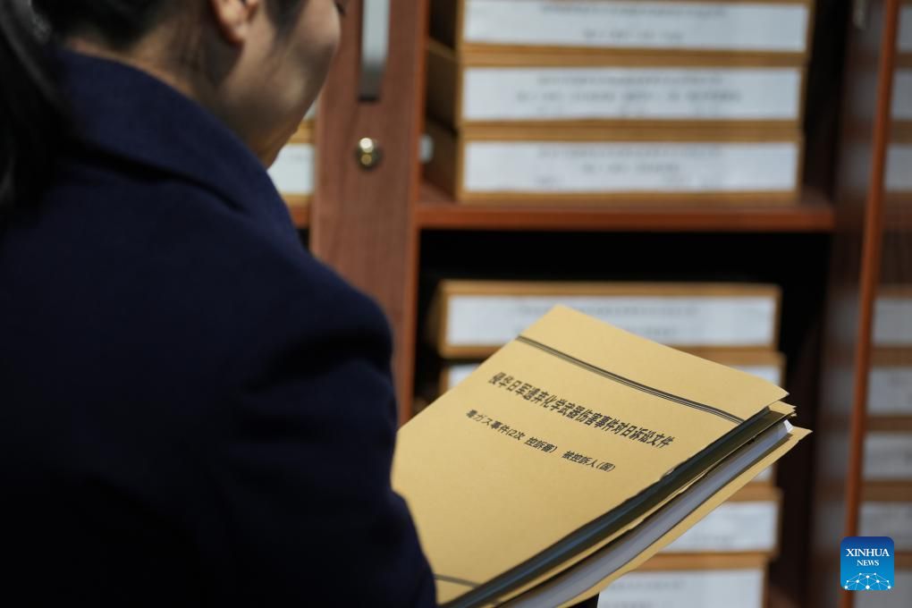 Archives are pictured at the former site of Unit 731 in Harbin, northeast China's Heilongjiang Province, Dec. 12, 2024. The former site of the notorious Japanese germ warfare army, known as Unit 731, reopened to public on Friday with a special exhibition on cultural relics and historical materials of Japan's germ-warfare crimes in China.