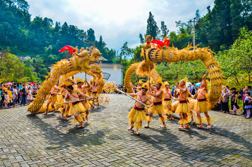 Photo shows Muchuan grass dragons in a live-action performance. (Photo/Gao Luchuan)
