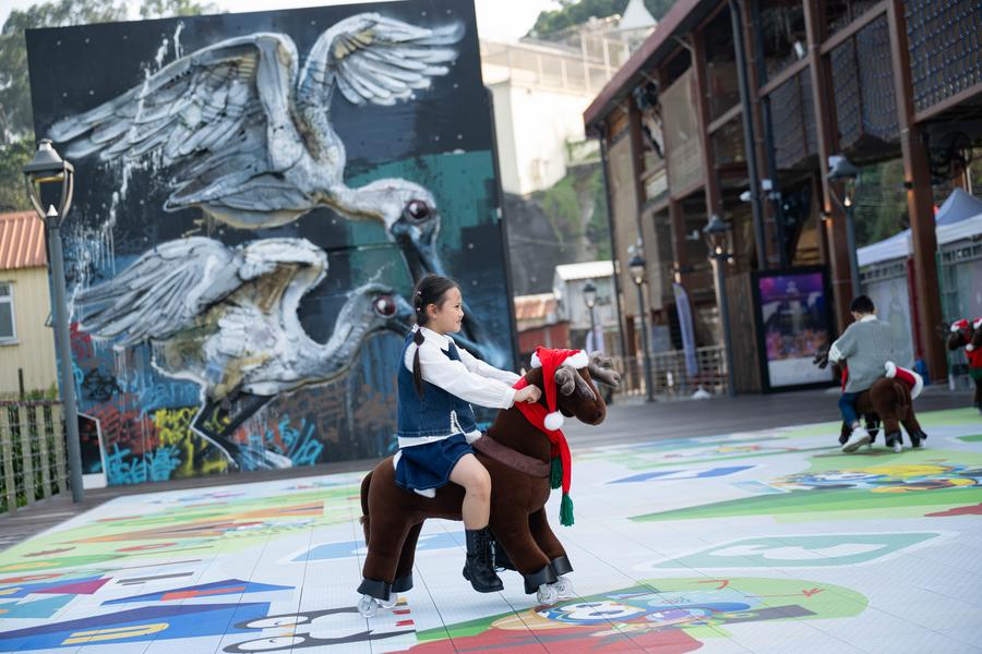 Children play at the revitalized Lai Chi Vun Shipyards in south China's Macao Special Administrative Region (SAR), Dec. 7, 2024. (Xinhua/Cheong Kam Ka)