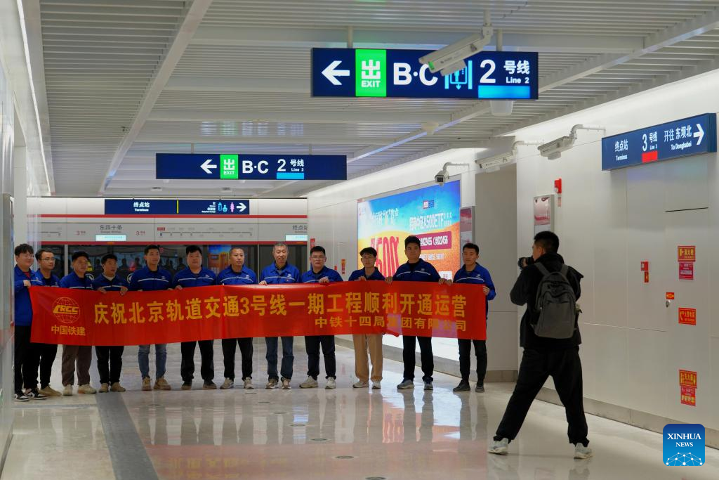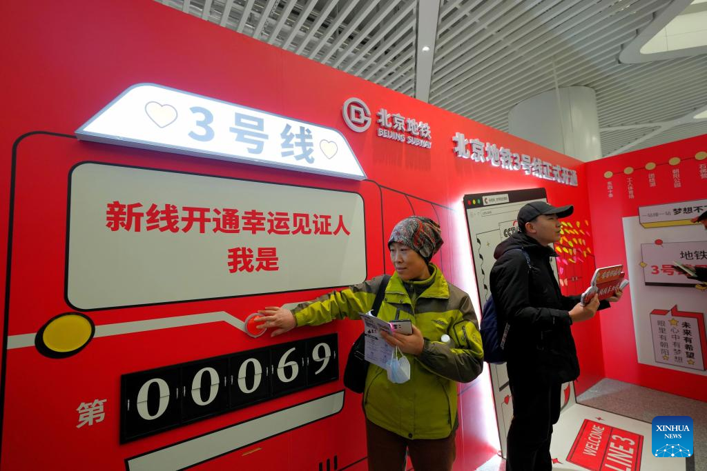 Passengers pose for photos at Chaoyang Station of Subway Line 3 in Beijing, capital of China, Dec 15, 2024. (Photo/Xinhua)
