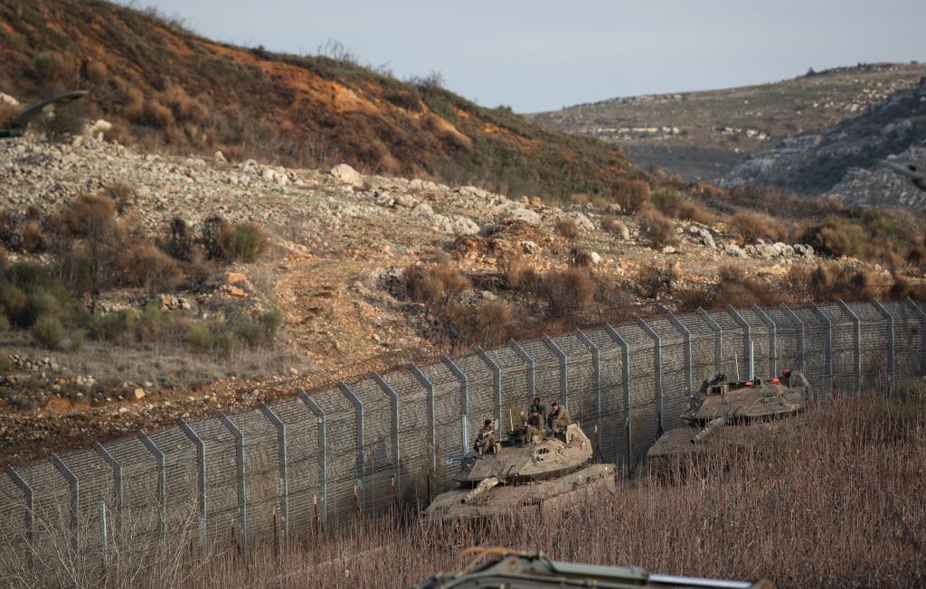 Israeli troops are seen near the buffer zone fence on the eastern side of the Golan Heights, on Dec. 10, 2024. (Xinhua/Chen Junqing)