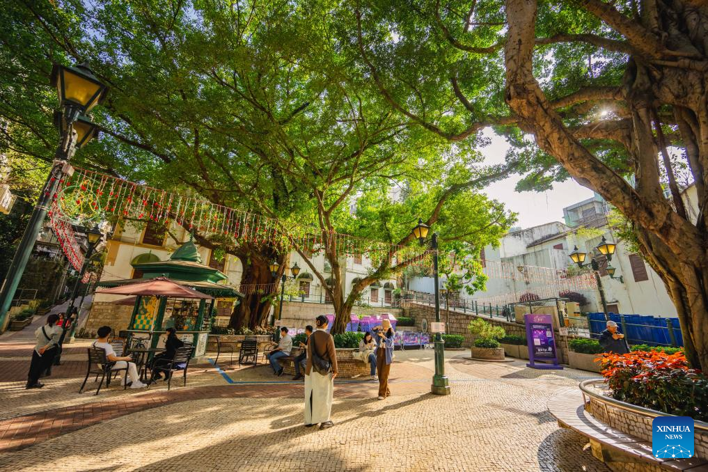 Tourists visit the Lilau Square in south China's Macao, Dec. 12, 2024.