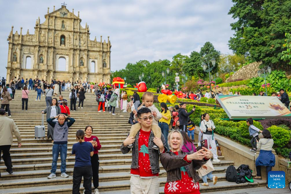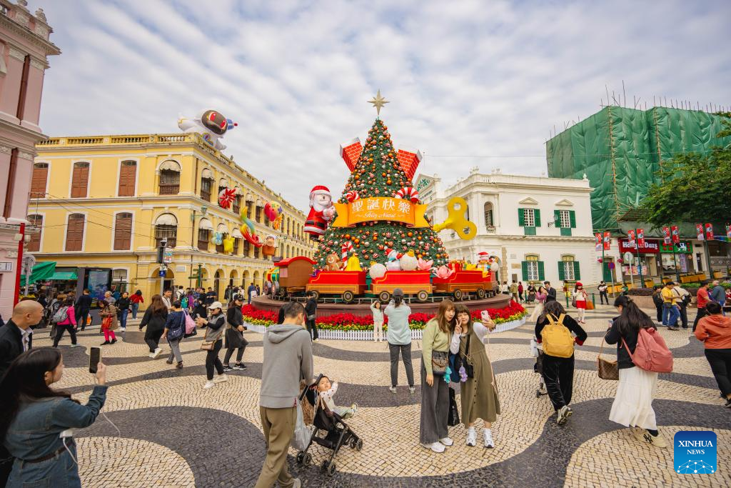 Tourists visit the Senado Square in south China's Macao, Dec. 12, 2024.