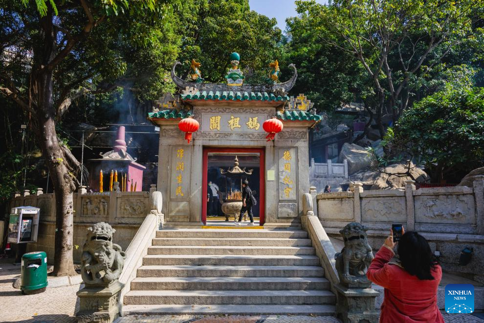 Tourists visit the A-Ma Temple in south China's Macao, Dec. 13, 2024.