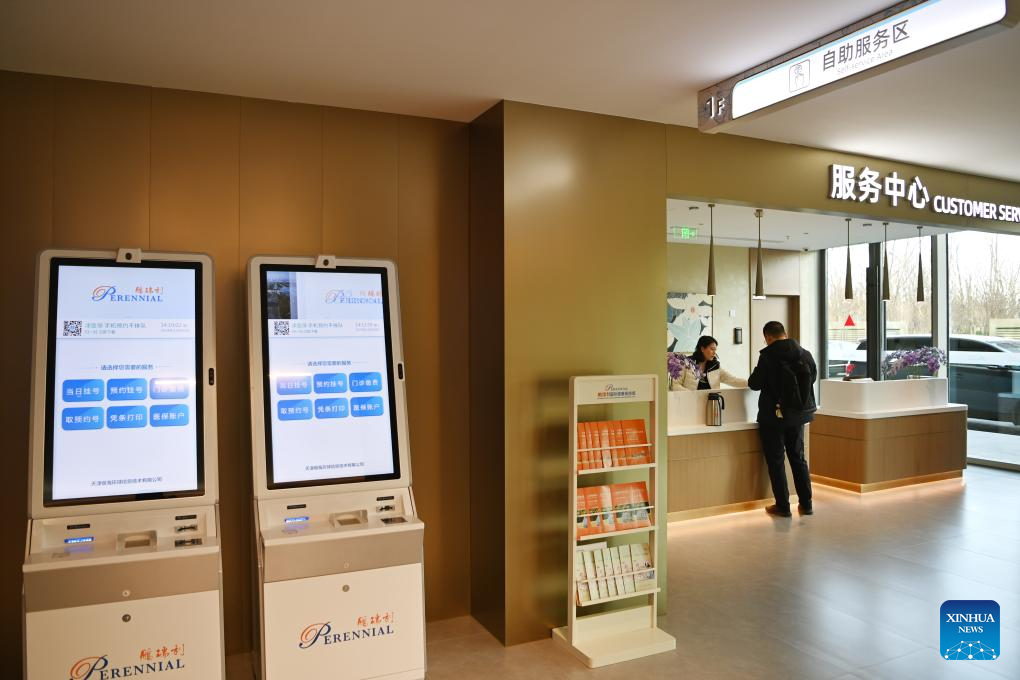 This photo taken on Dec. 16, 2024 shows the self-service zone in the Perennial General Hospital Tianjin in north China's Tianjin Municipality. (Xinhua/Li Ran)