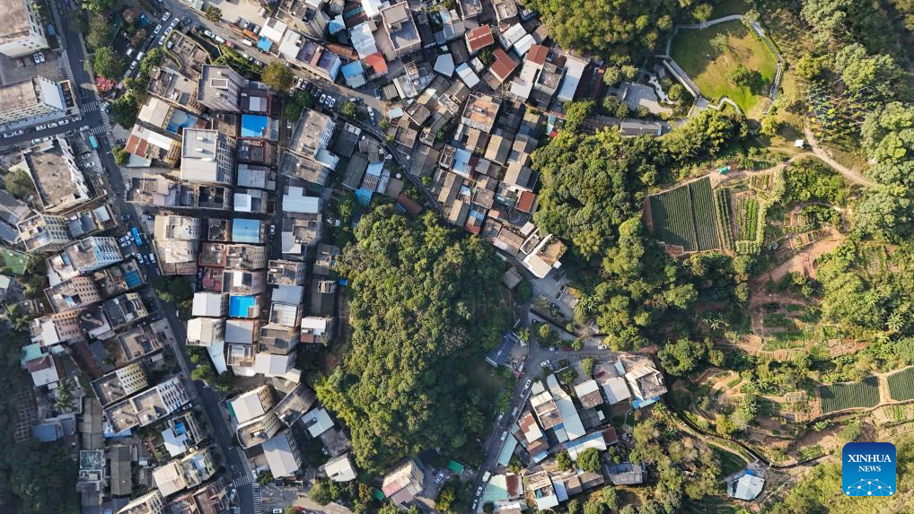 This aerial drone photo taken on Dec. 13, 2024 shows a view of Shangwei Village, a Hakka village with a history of more than 400 years, in Longhua District of Shenzhen, south China's Guangdong Province. Since 2017, the local government has introduced nearly 100 artistic talents to Shangwei Village to revitalize the ancient village with arts on the basis of originality and cultural creativity.