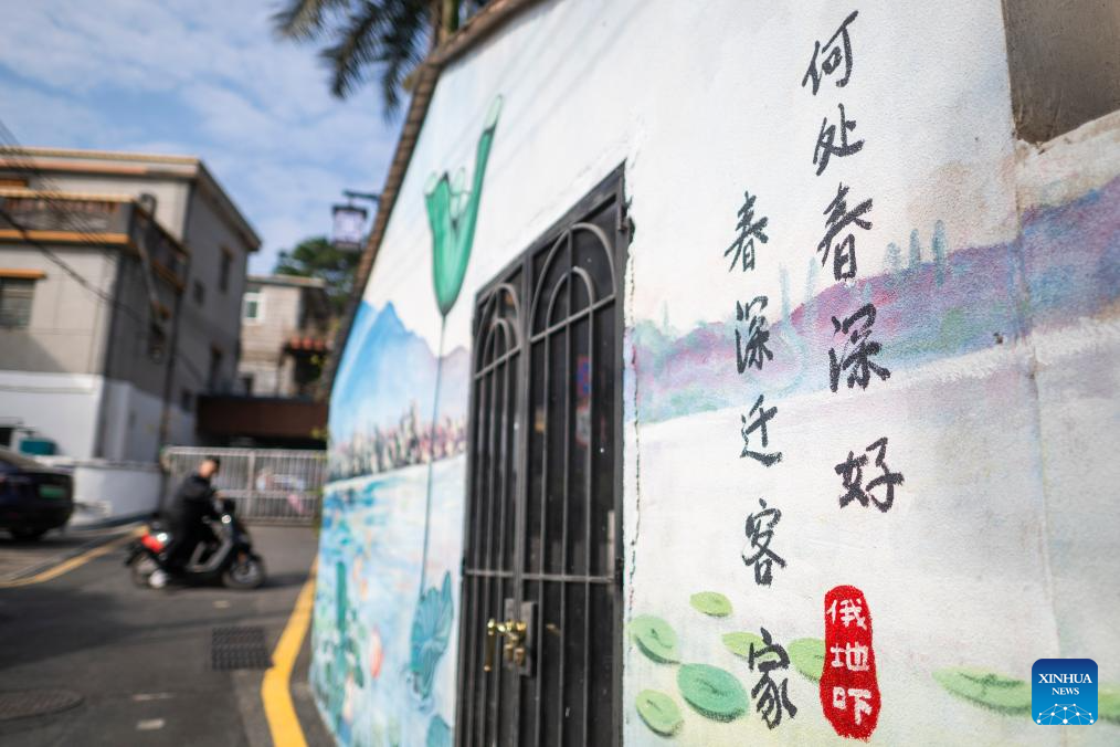 This photo taken on Dec. 13, 2024 shows a color painting on the wall of an old house in an ancient Hakka village near Shangwei Village, a Hakka village with a history of more than 400 years, in Longhua District of Shenzhen, south China's Guangdong Province. Since 2017, the local government has introduced nearly 100 artistic talents to Shangwei Village to revitalize the ancient village with arts on the basis of originality and cultural creativity.