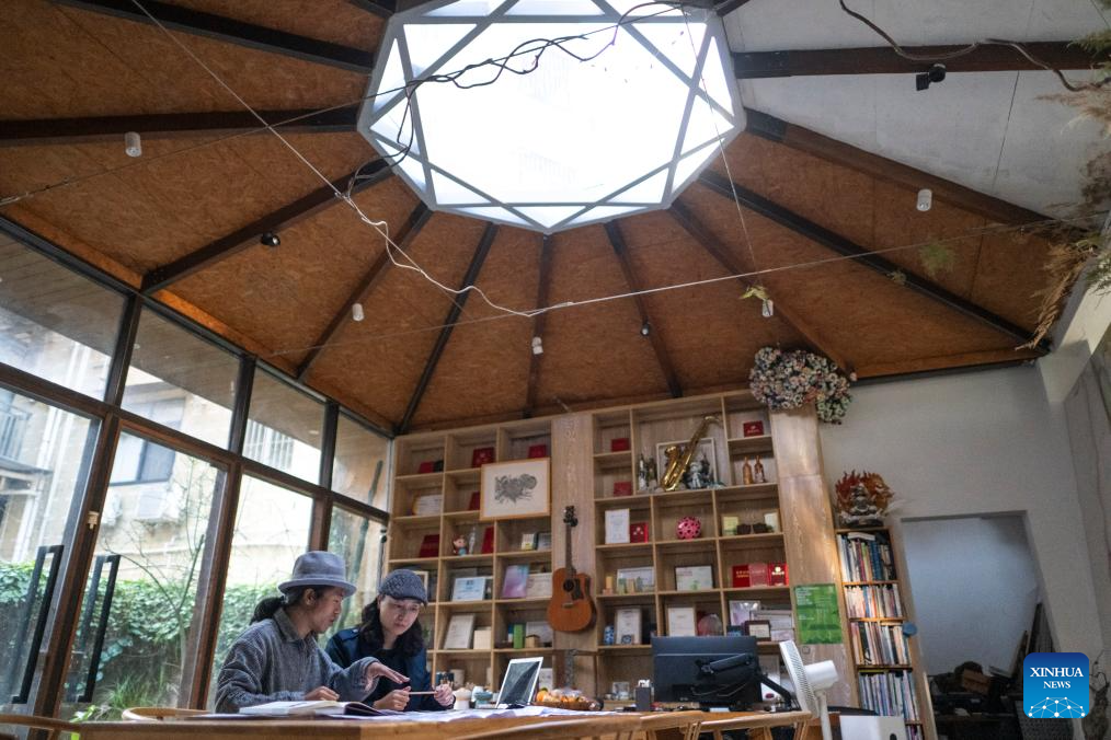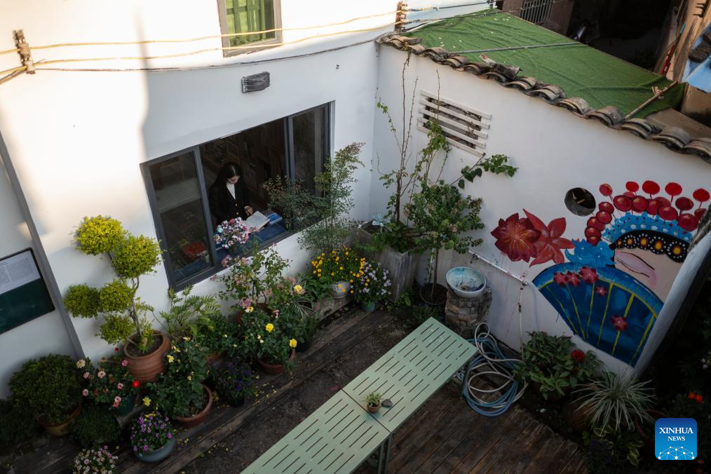 A villager visits a bookstore in Shangwei Village, a Hakka village with a history of more than 400 years, in Longhua District of Shenzhen, south China's Guangdong Province, on Dec. 13, 2024. Since 2017, the local government has introduced nearly 100 artistic talents to Shangwei Village to revitalize the ancient village with arts on the basis of originality and cultural creativity.