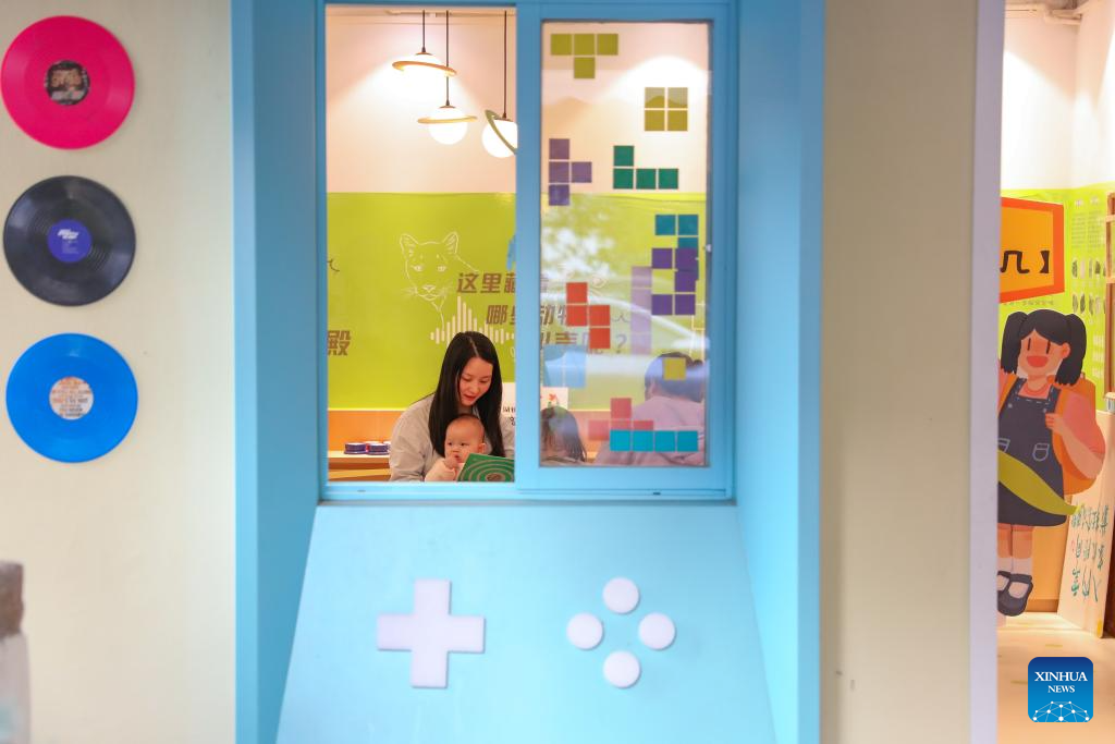 Villagers read cartoon books at a children's center in Shangwei Village, a Hakka village with a history of more than 400 years, in Longhua District of Shenzhen, south China's Guangdong Province, on Dec. 13, 2024. Since 2017, the local government has introduced nearly 100 artistic talents to Shangwei Village to revitalize the ancient village with arts on the basis of originality and cultural creativity.