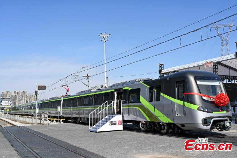 A green intelligent urban rail train is unveiled in Guangzhou, south China's Guangdong Province, Dec. 16, 2024. (China News Service/Chen Jimin)