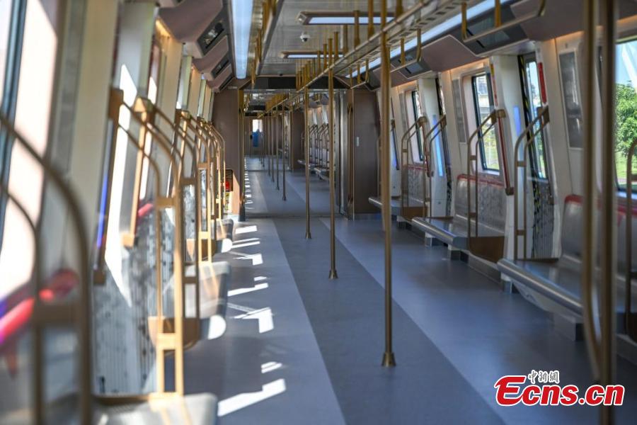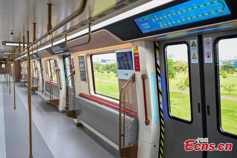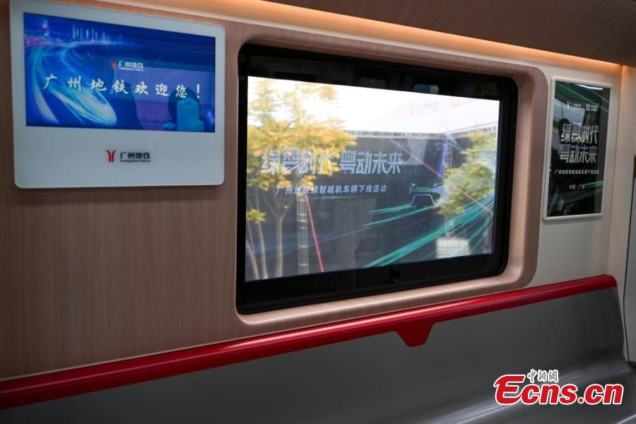 An interior view of a green intelligent urban rail train in Guangzhou, south China's Guangdong Province, Dec. 16, 2024. (China News Service/Chen Jimin)