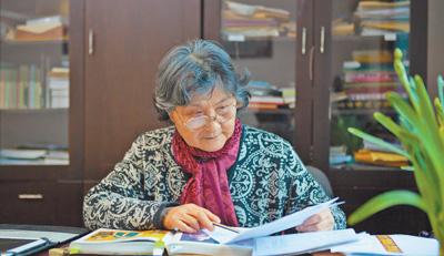 Photo shows Qian Xiaoping, a national-level inheritor of the national intangible cultural heritage of Song brocade weaving techniques. (Photo courtesy of the interviewee)