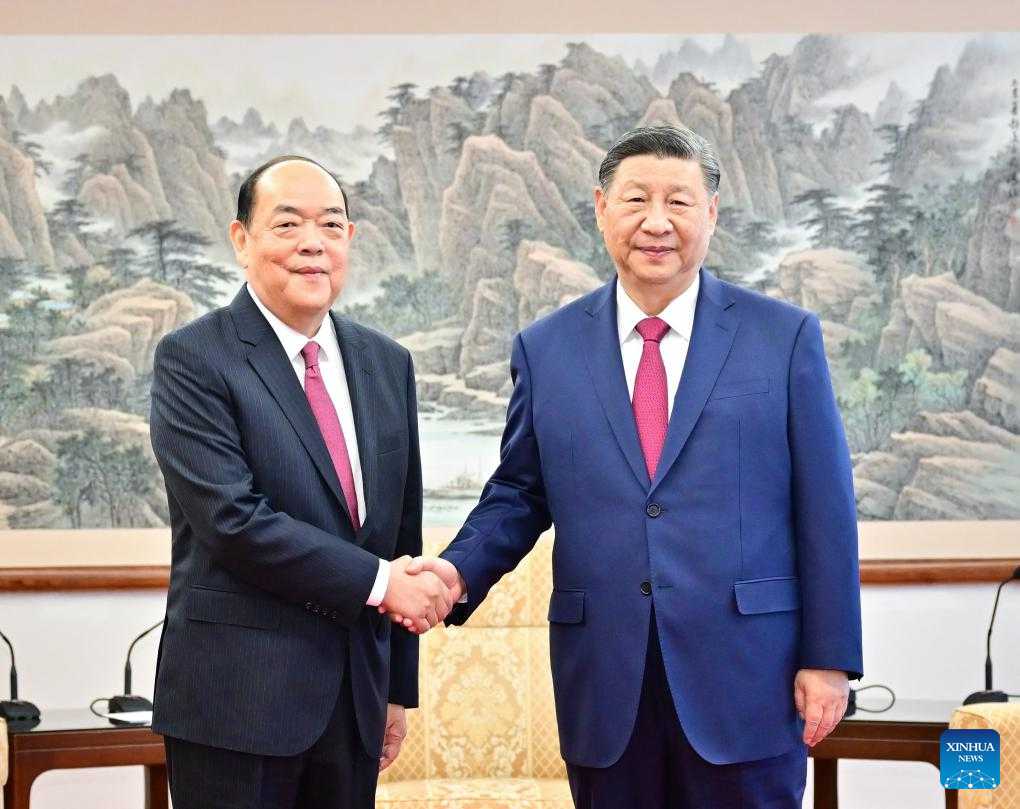 MACAO, Dec. 18 (Xinhua) -- Chinese President Xi Jinping on Wednesday met with Ho Iat Seng, the outgoing chief executive of the Macao Special Administrative Region (SAR), expressing the central authorities' full acknowledgment of the work of Ho and the fifth-term Macao SAR government.
