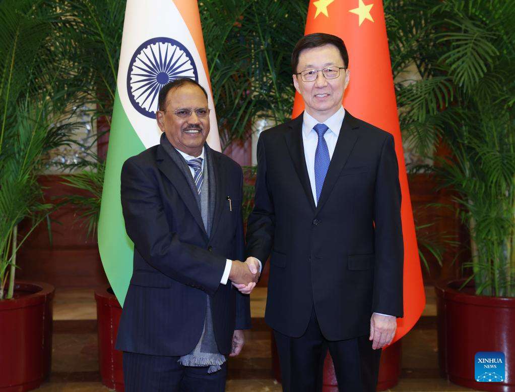 BEIJING, Dec. 18 (Xinhua) -- Chinese Vice President Han Zheng met with Shri Ajit Doval, India's national security adviser and special representative for the India-China boundary question, in Beijing on Wednesday.