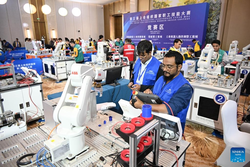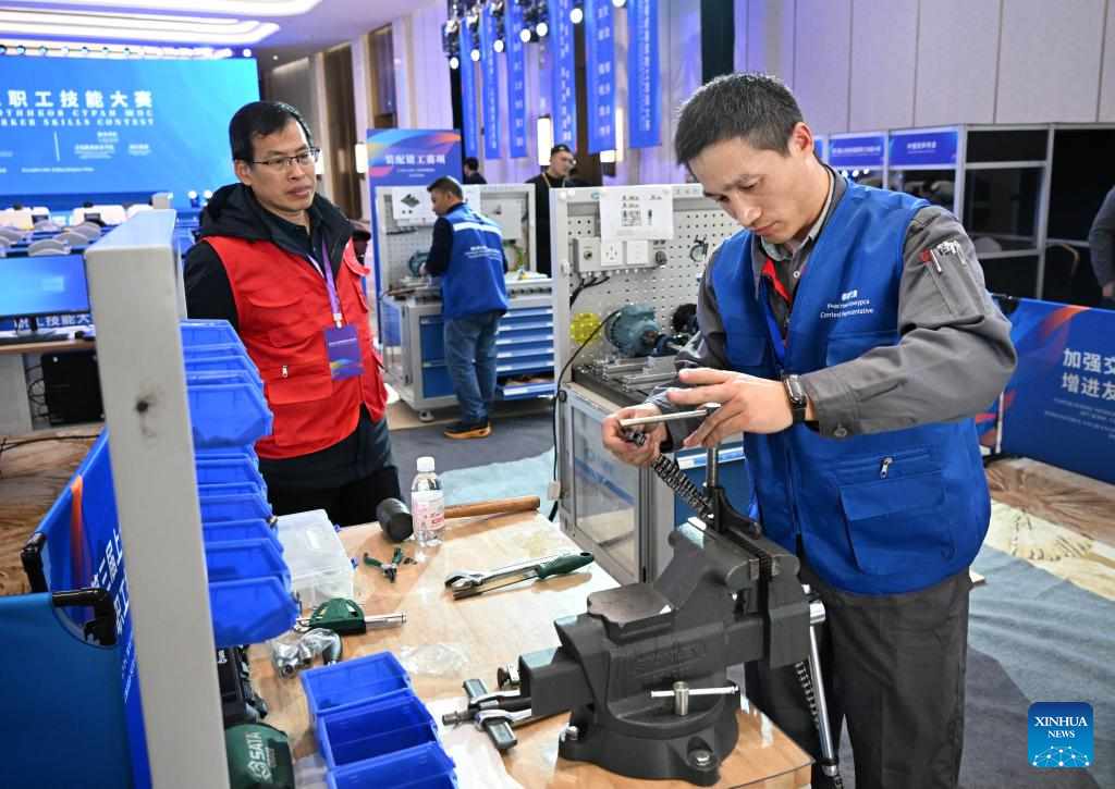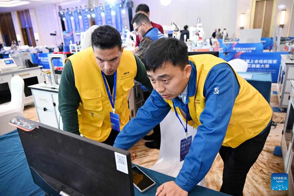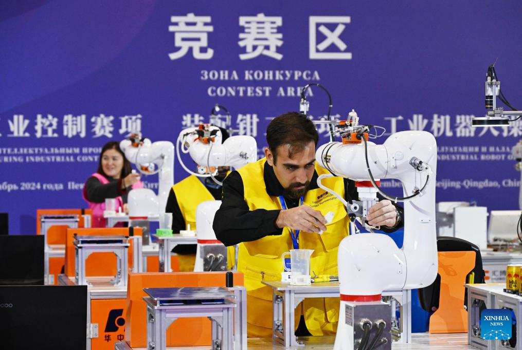 Participants compete in the third SCO Countries Worker Skills Contest in Qingdao, east China's Shandong Province, Dec. 18, 2024. The contest kicked off on Wednesday in Qingdao, attracting skilled workers competing in three programs. (Xinhua/Li Ziheng)