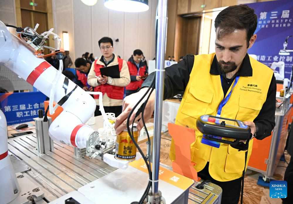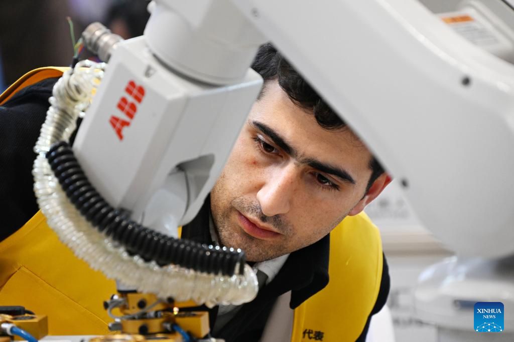 A competitor from Armenia competes in the third SCO Countries Worker Skills Contest in Qingdao, east China's Shandong Province, Dec. 18, 2024. The contest kicked off on Wednesday in Qingdao, attracting skilled workers competing in three programs. (Xinhua/Li Ziheng)