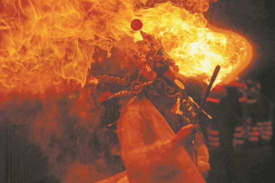 An artist performs during a magic night of intangible cultural heritage in Liancheng county, Longyan city, southeast China's Fujian Province. (Photo courtesy of the media convergence center of Liancheng county)