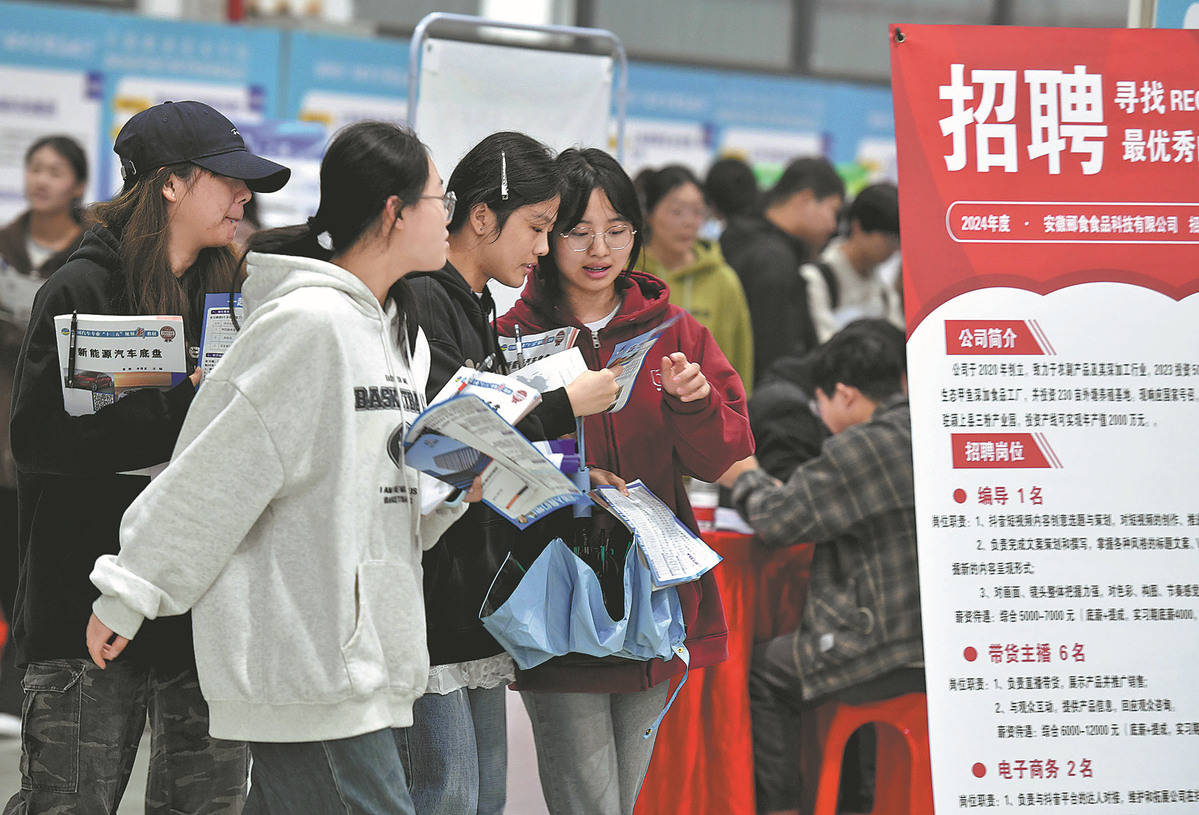College jobseekers look for suitable occupations at a campus career fair in Fuyang, Anhui province, on Nov 16. (Photo/China Daily)