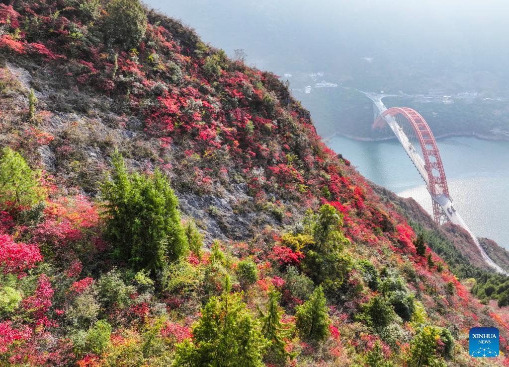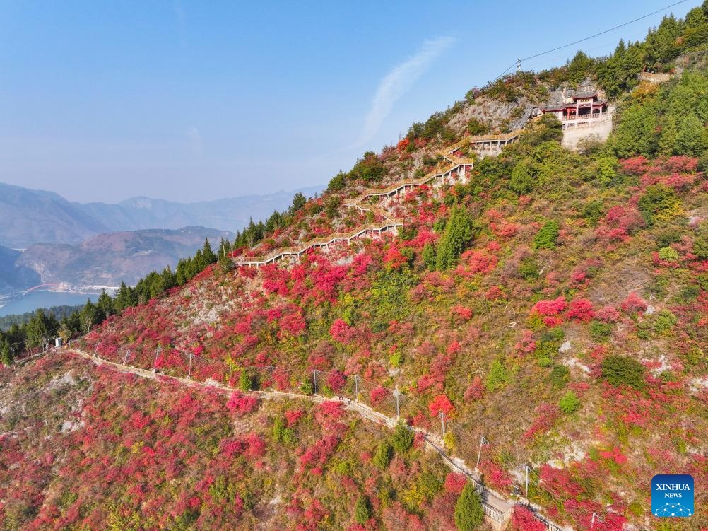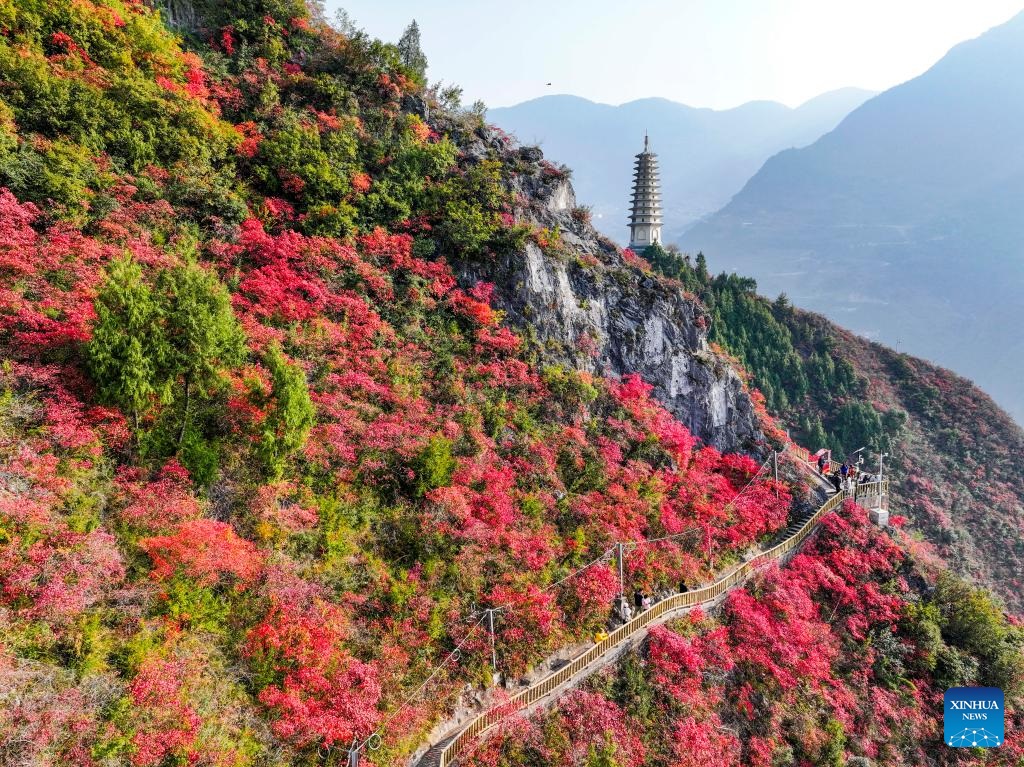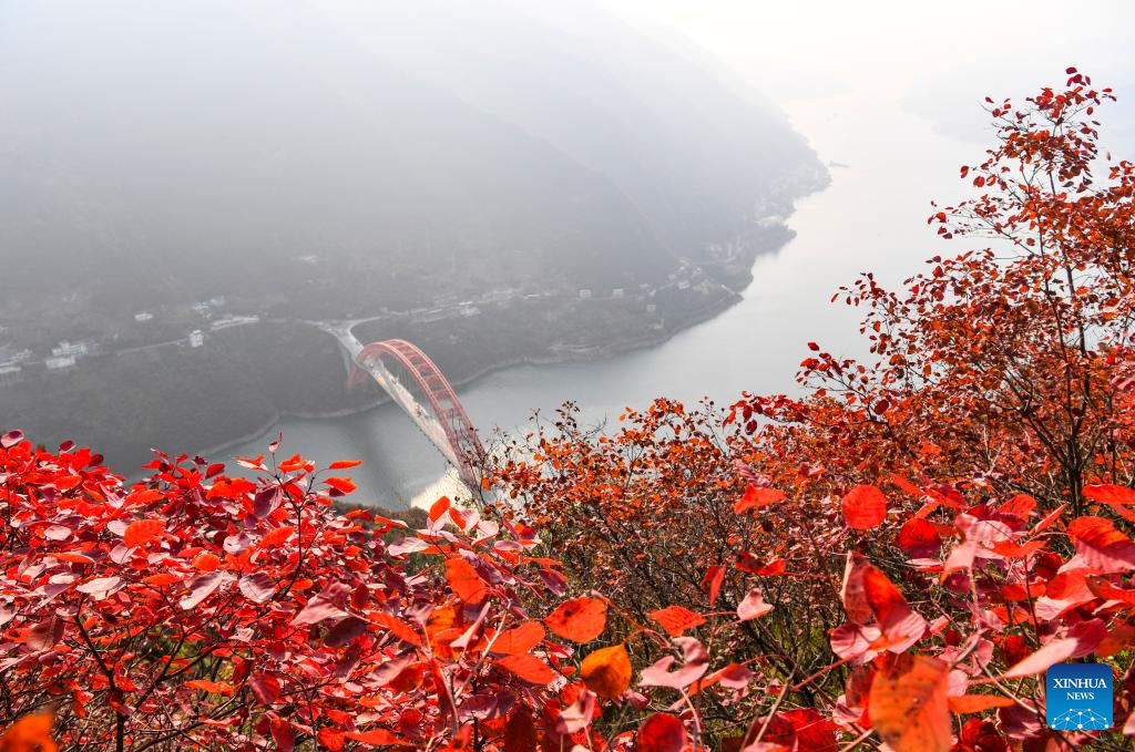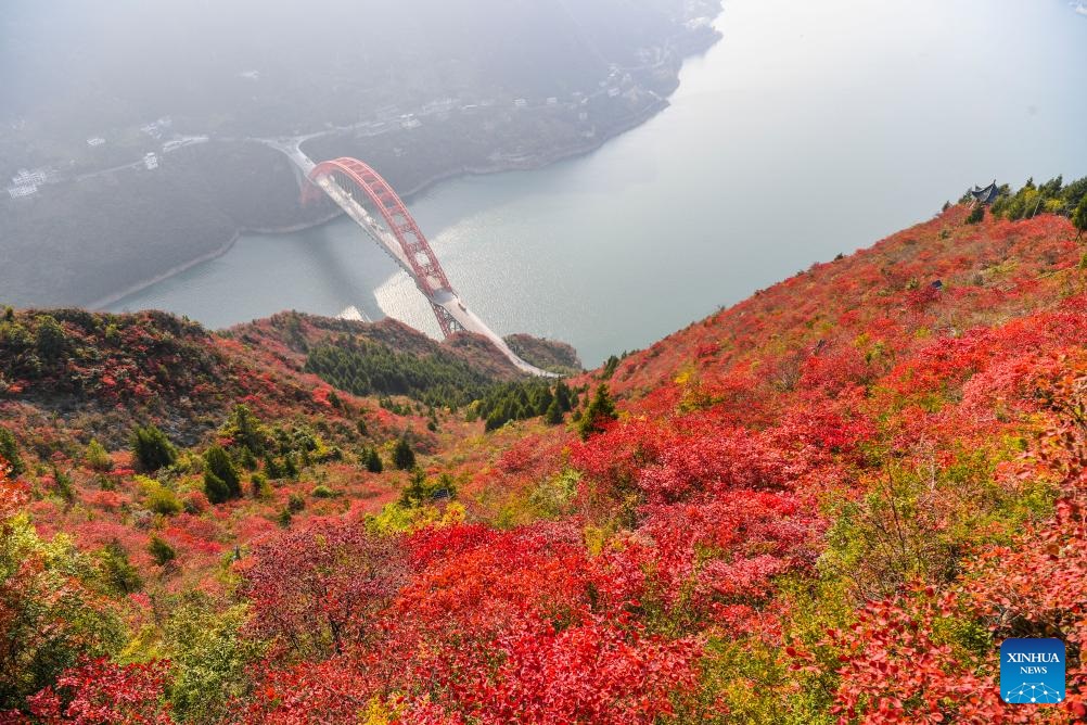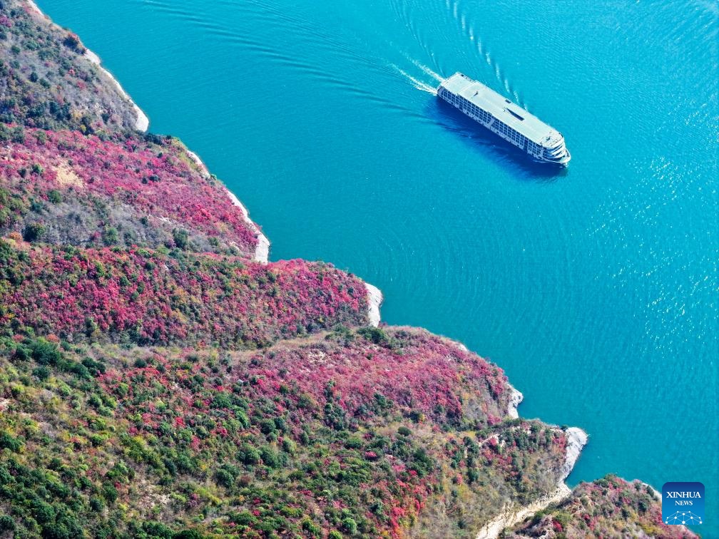 Red leaves have recently dyed mountains along the Wuxia Gorge, creating a picturesque scenery that attracts numerous tourists. In the meantime, authorities of Wushan County are committed to developing cultural tourism by hosting the Wushan Red Leaf Festival and other related programs. (Xinhua/Wang Quanchao)