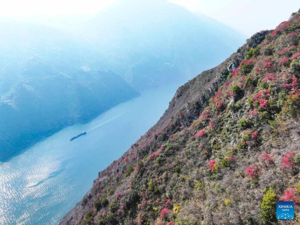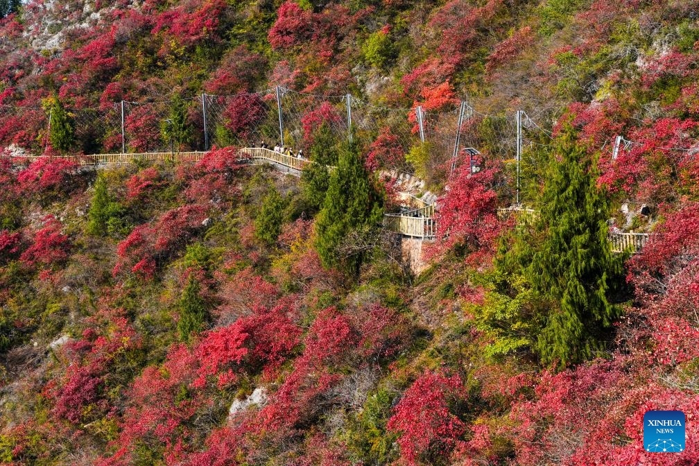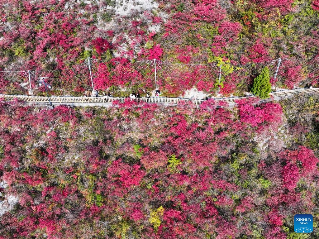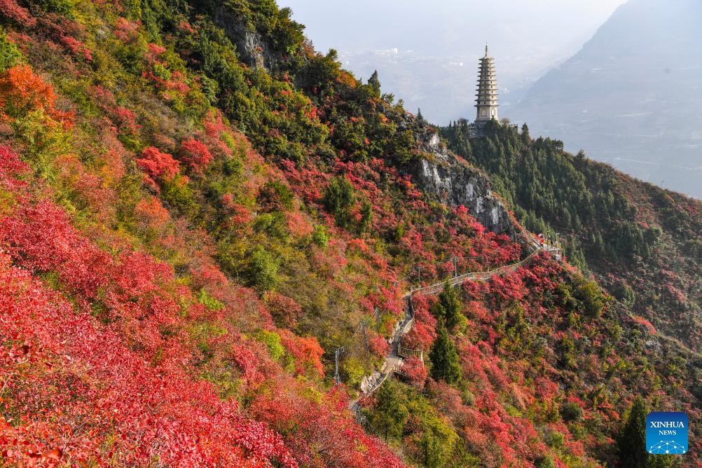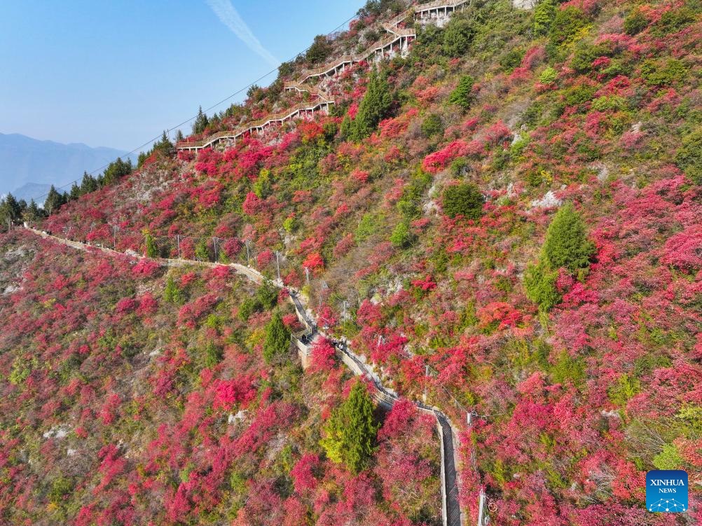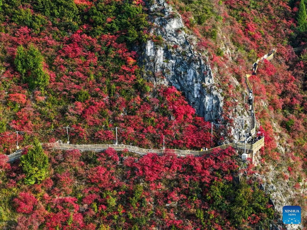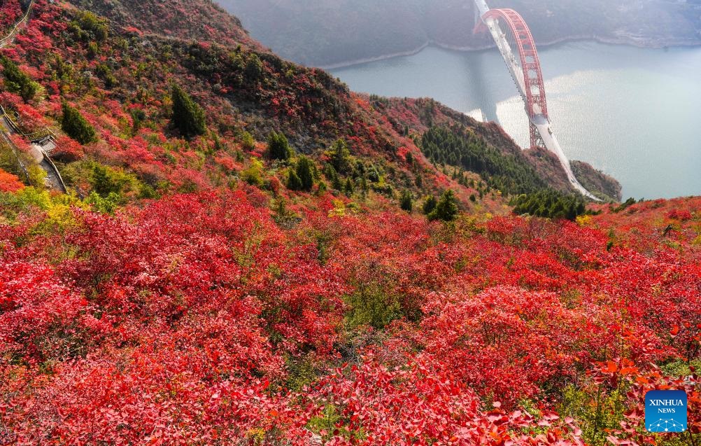 Red leaves have recently dyed mountains along the Wuxia Gorge, creating a picturesque scenery that attracts numerous tourists. In the meantime, authorities of Wushan County are committed to developing cultural tourism by hosting the Wushan Red Leaf Festival and other related programs. (Xinhua/Wang Quanchao)