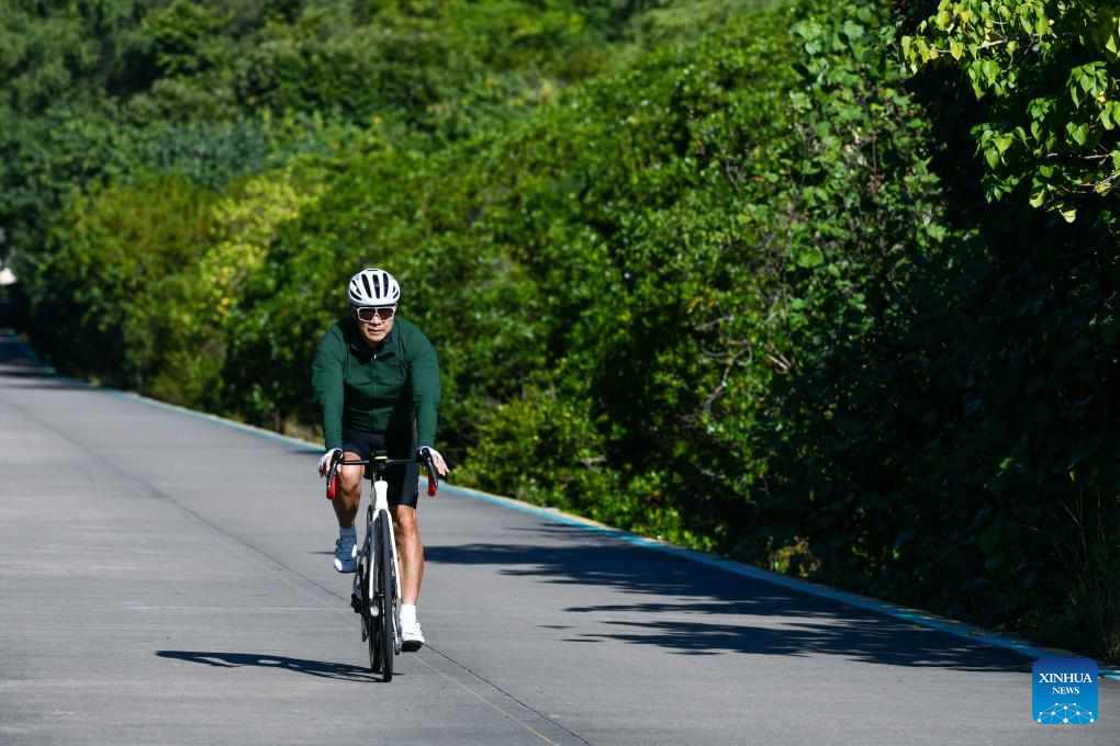 A cyclist rides at a mangrove coastal eco-park in Shenzhen City, south China's Guangdong Province, Nov. 29, 2024. The Guangdong-Hong Kong-Macao Greater Bay Area boasts a large expanse of mangroves, especially in Shenzhen, Zhuhai, Jiangmen and Huizhou. Growing in the intertidal zones of tropical and subtropical coasts, mangroves play an important role in purifying seawater, preventing wind and waves, sequestering and storing carbon, and maintaining biodiversity. (Xinhua/Liang Xu)
