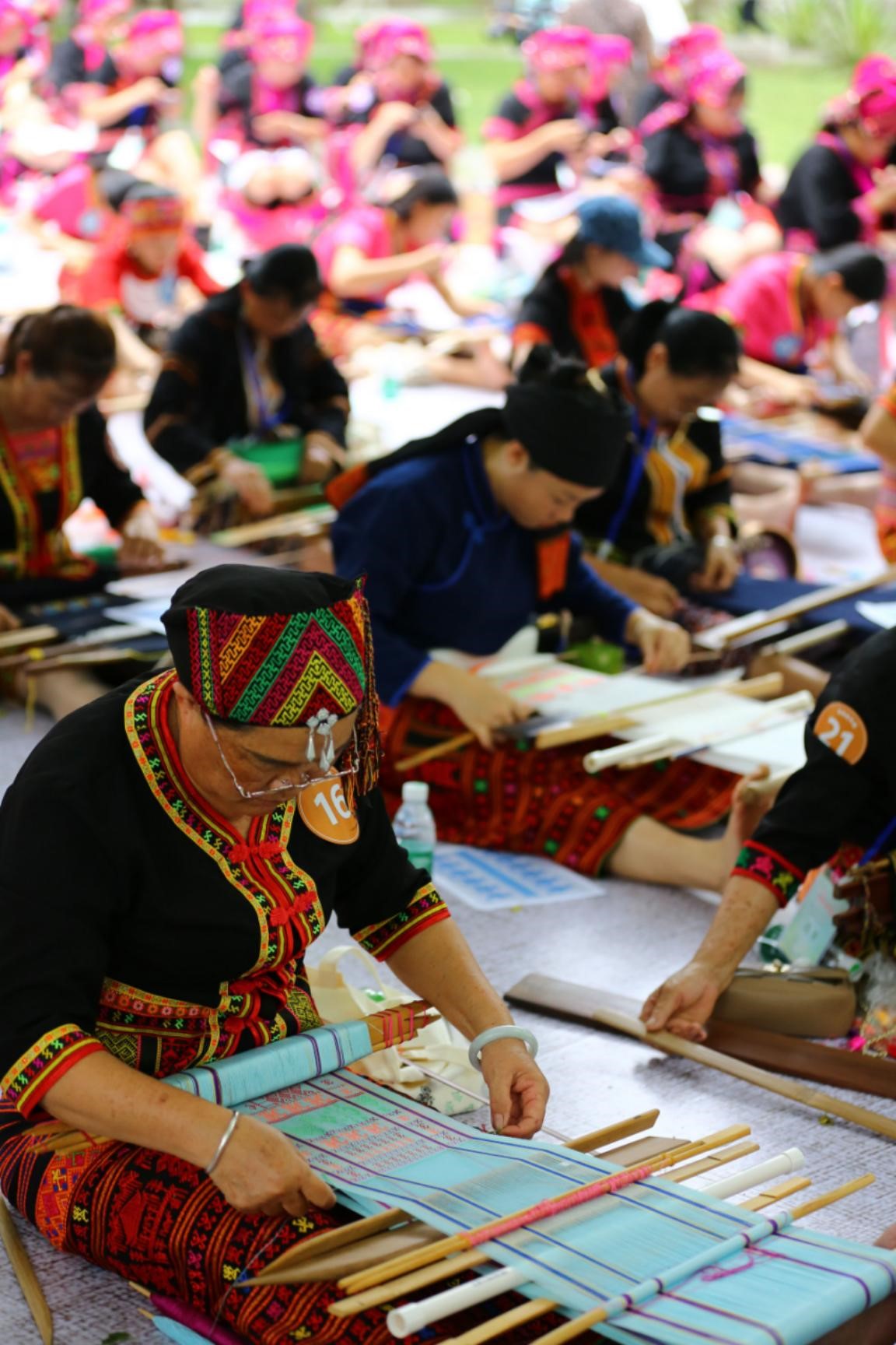 A Li textile techniques competition is held in Sanya, south China's Hainan province to celebrate the Shangsi Festival, also known as the Double Third Festival, an ancient Chinese festival celebrated on the third day of the third lunar month, April 9, 2024. (People's Daily Online/Chen Wenwu)