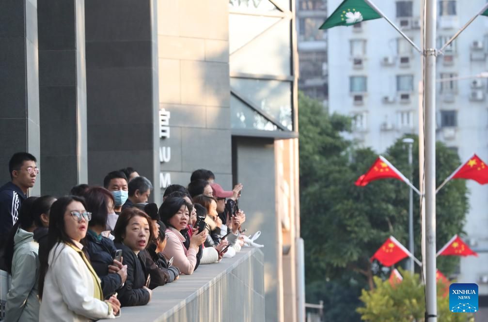 People watch a flag-raising ceremony marking the 25th anniversary of Macao's return to the motherland, in Macao, south China, Dec. 20, 2024. (Xinhua/Yao Qilin)