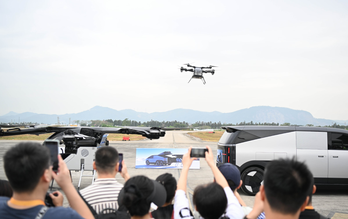 A flying car developed by Xpeng Aeroht performs at the China International Aviation and Aerospace Exhibition, also known as Airshow China in Zhuhai, South China's Guangdong province, on Nov 10, 2024. (Photo/Xinhua)