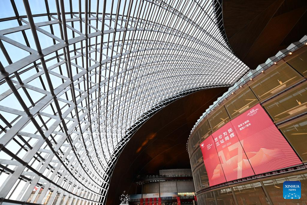 A performance is staged at a hall of the National Centre for the Performing Arts (NCPA) in Beijing, capital of China, Dec. 22, 2024. NCPA staged 15 performances and more than 50 activities on its open day to celebrate its 17th anniversary. (Xinhua/Luo Xiaoguang)
