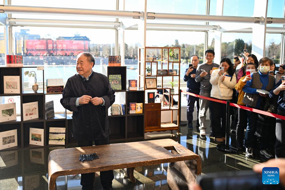 Writer Mo Yan meets with readers at the National Centre for the Performing Arts (NCPA) in Beijing, capital of China, Dec. 22, 2024. NCPA staged 15 performances and more than 50 activities on its open day to celebrate its 17th anniversary. (Xinhua/Chen Zhonghao)