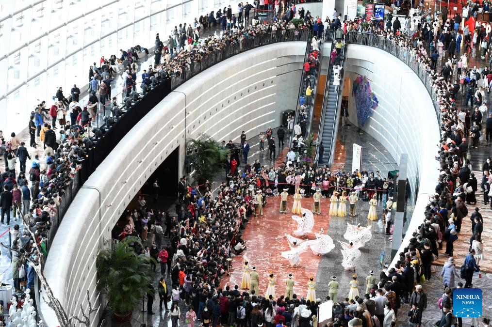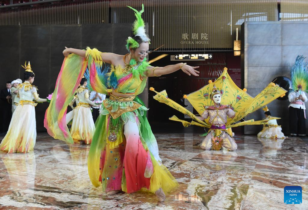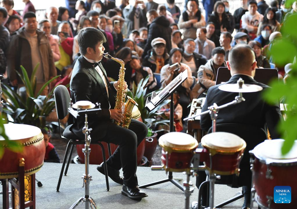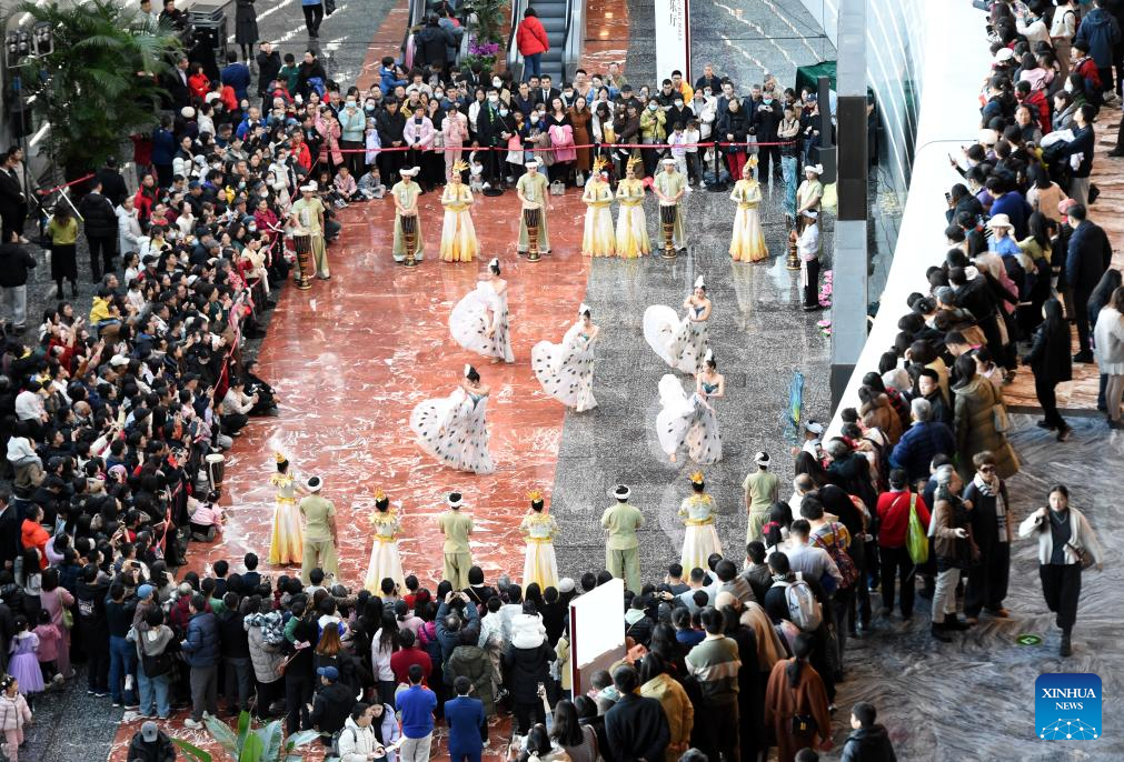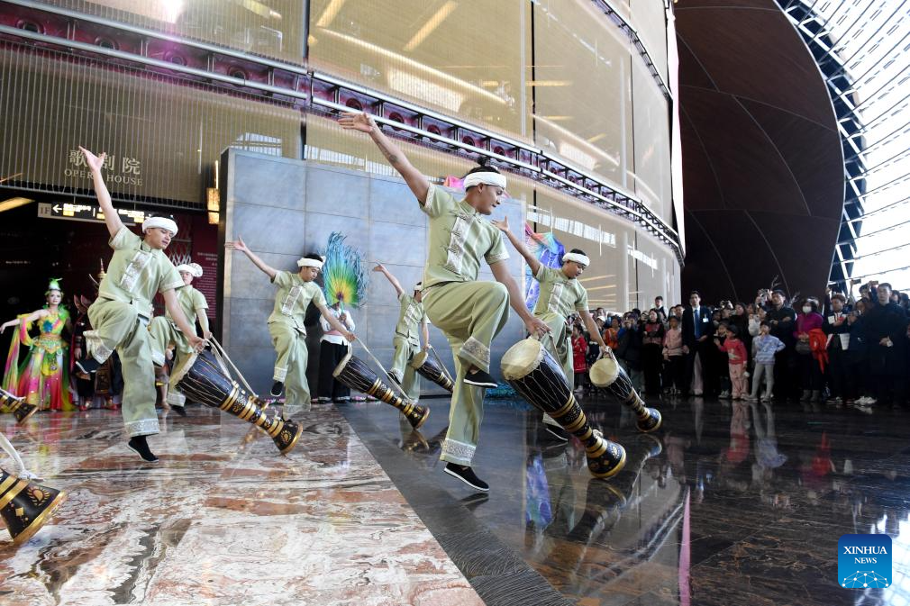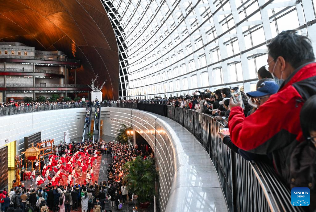 Artists perform at a public space of the National Centre for the Performing Arts (NCPA) in Beijing, capital of China, Dec. 22, 2024. NCPA staged 15 performances and more than 50 activities on its open day to celebrate its 17th anniversary. (Xinhua/Luo Xiaoguang)