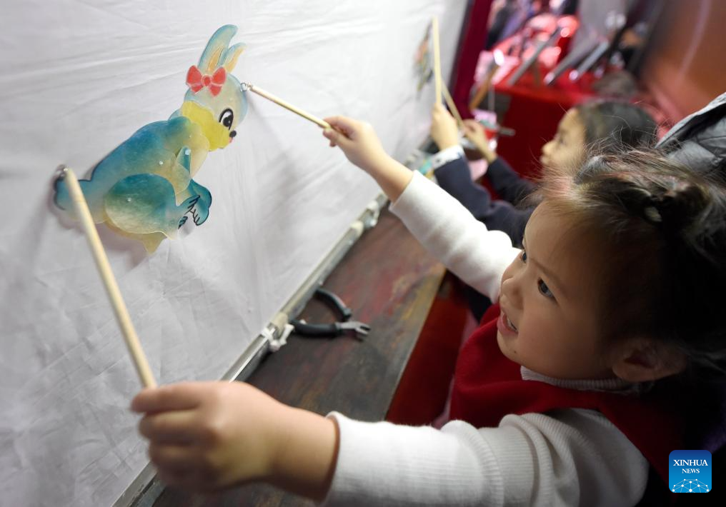 Visitors experience shadow play at a public space of the National Centre for the Performing Arts (NCPA) in Beijing, capital of China, Dec. 22, 2024. NCPA staged 15 performances and more than 50 activities on its open day to celebrate its 17th anniversary. (Xinhua/Luo Xiaoguang)