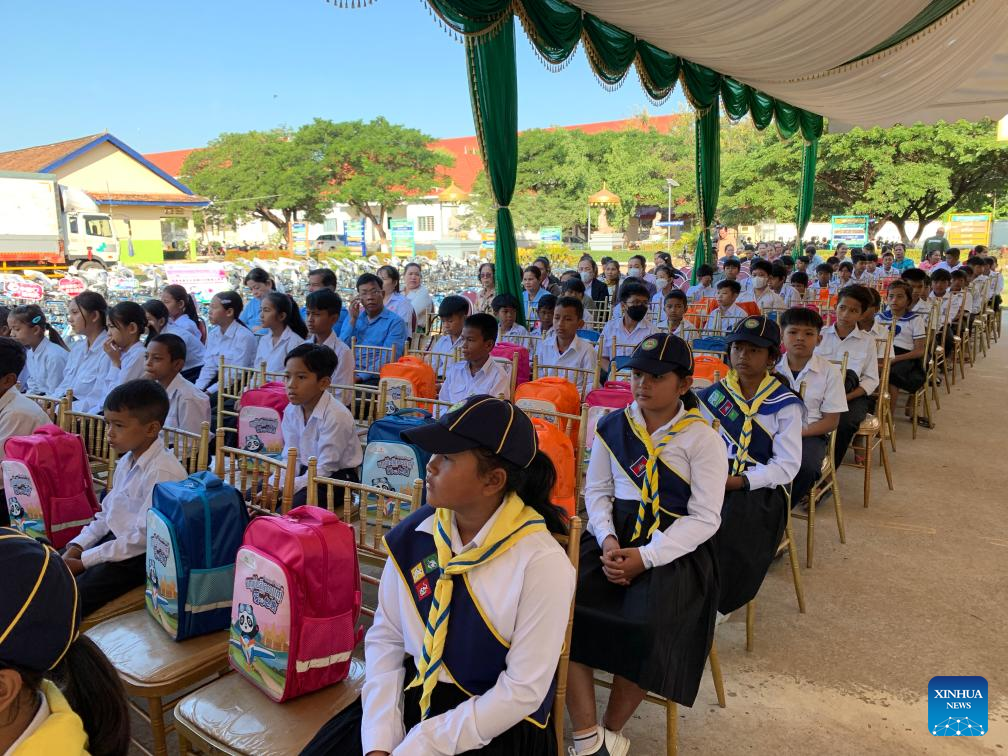 KAMPONG THOM, Cambodia, Dec. 23 (Xinhua) -- Chinese charities on Monday donated 2,000 bicycles and 12,000 school bags from the Panda Pack project to primary schools in Cambodia.