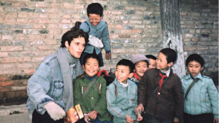In the 1980s, Brian (far left) visiting China for the first time, with Chinese children.
