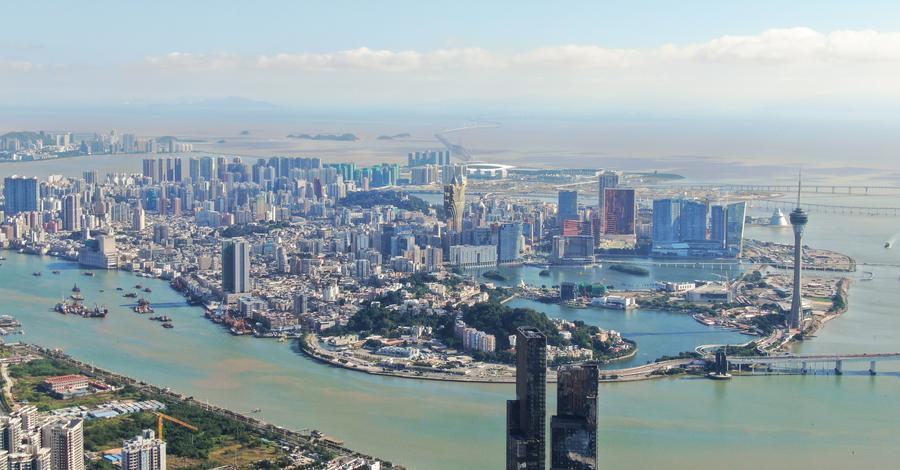 An aerial drone photo taken on Nov. 26, 2024 shows Macao, as seen from Zhuhai City in south China's Guangdong Province. (Xinhua/Deng Hua)