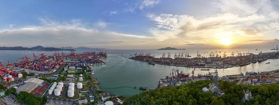 An aerial drone photo taken on Sept. 18, 2024 shows a view of a port aera in Shenzhen, south China's Guangdong Province. (Xinhua/Mao Siqian)