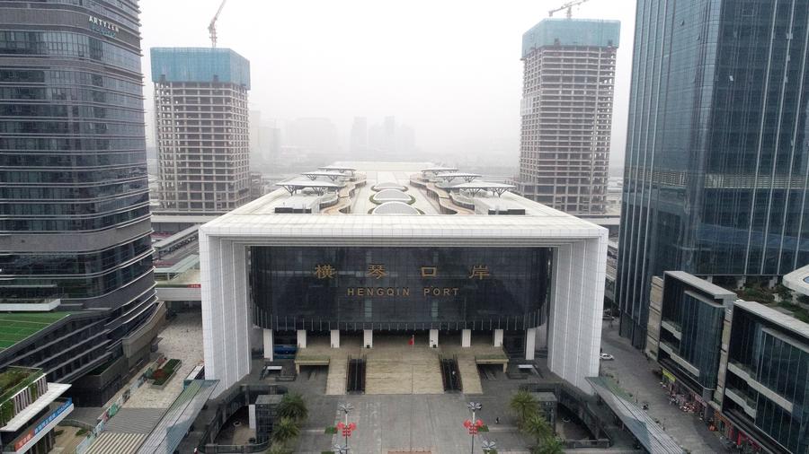 An aerial drone photo taken on Feb. 29, 2024 shows a view of the Hengqin Port in south China. (Xinhua/Lu Hanxin)