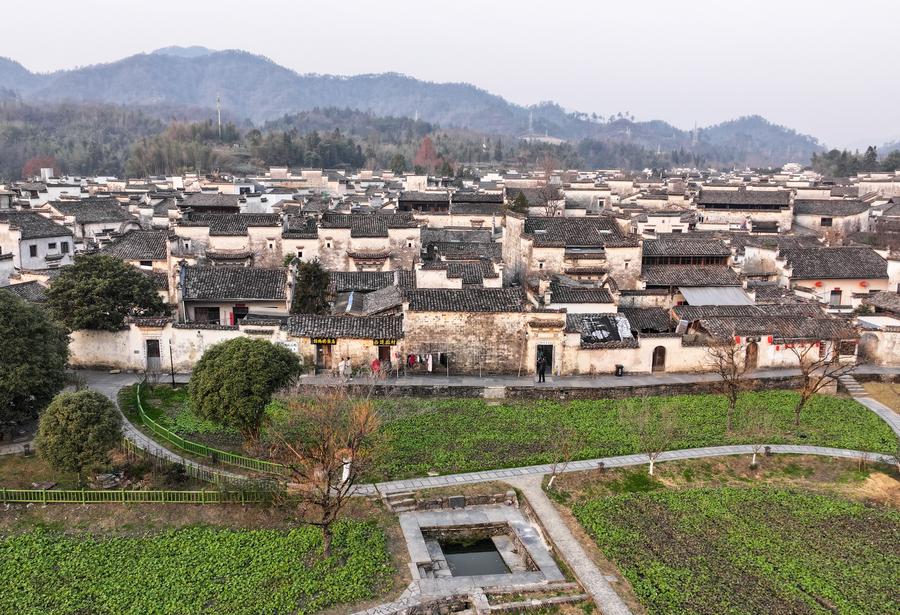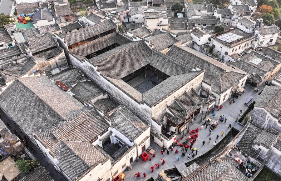 This aerial drone photo taken on Dec. 18, 2024 shows a view of Xidi Village of Yixian County in Huangshan City, east China's Anhui Province. (Xinhua/Du Yu)