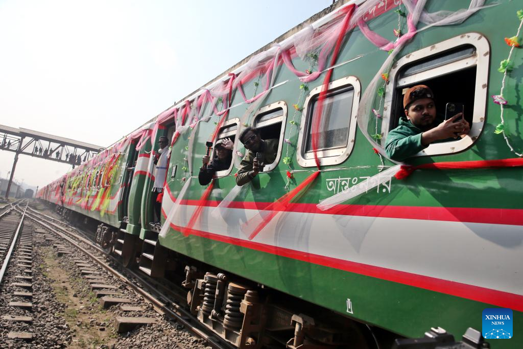 DHAKA, Dec. 24 (Xinhua) -- With the first train decorated with colorful balloons and ribbons arriving at Dhaka station, Bangladesh's largest railway Padma Bridge Rail Link Project (PBRLP) officially opened across its entire line to traffic here Tuesday.