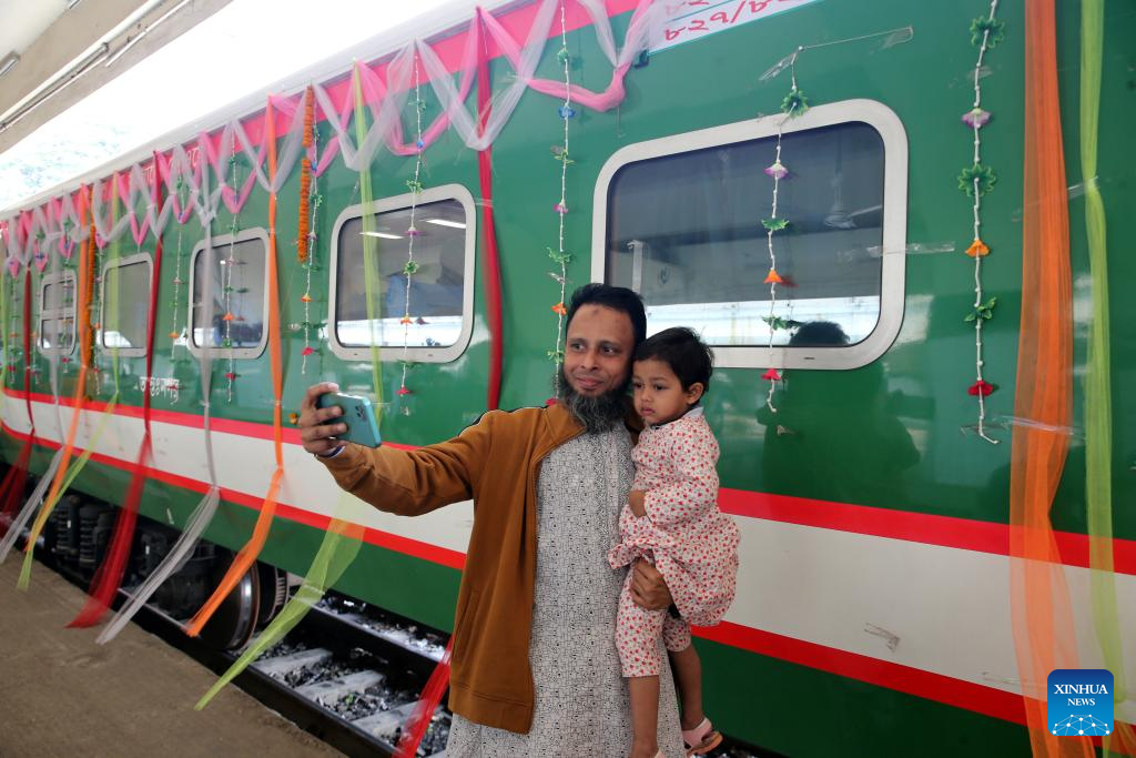 The first train of the Padma Bridge Rail Link Project (PBRLP) is pictured at Dhaka station, Dhaka, Bangladesh, Dec. 24, 2024. (Xinhua)