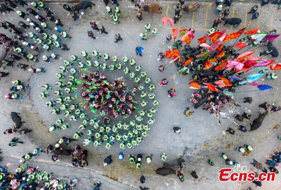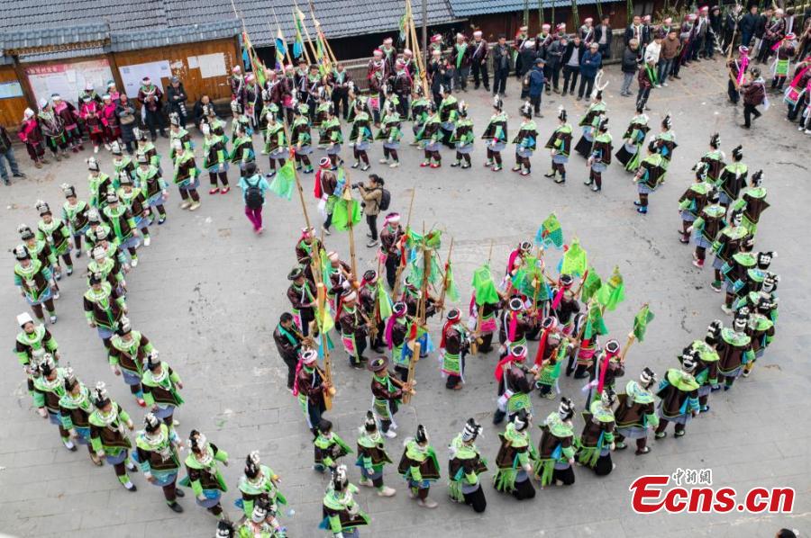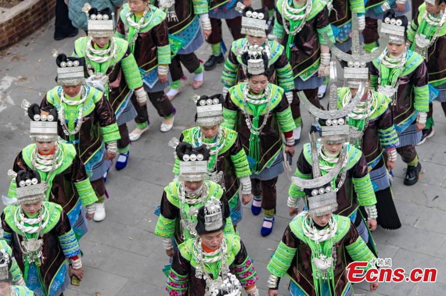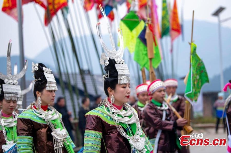 People of the Miao ethnic group take part in a celebration for the Guzang Festival in Congjiang County of Qiandongnan Miao and Dong Autonomous Prefecture, Southwest China's Guizhou Province, Dec. 24, 2024. (China News Service/Wu Dejiang)