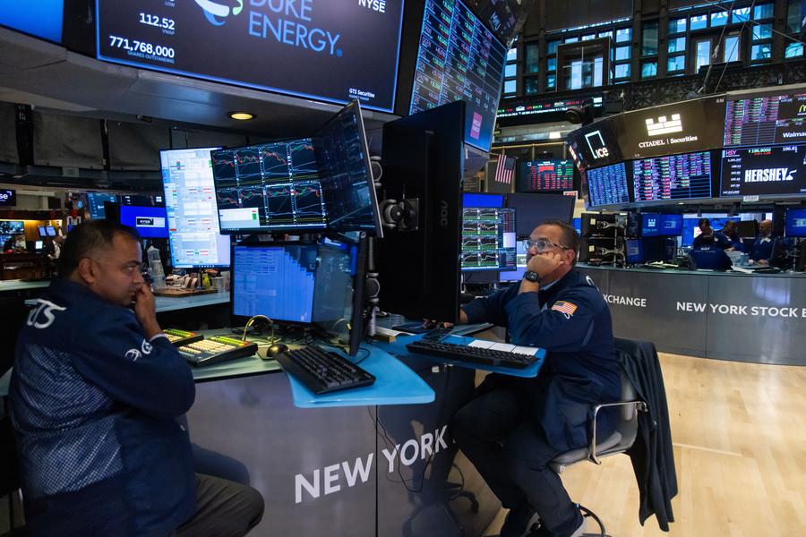 Traders work on the trading floor of the New York Stock Exchange (NYSE) in New York, the United States, on Aug. 5, 2024. (Photo by Michael Nagle/Xinhua)