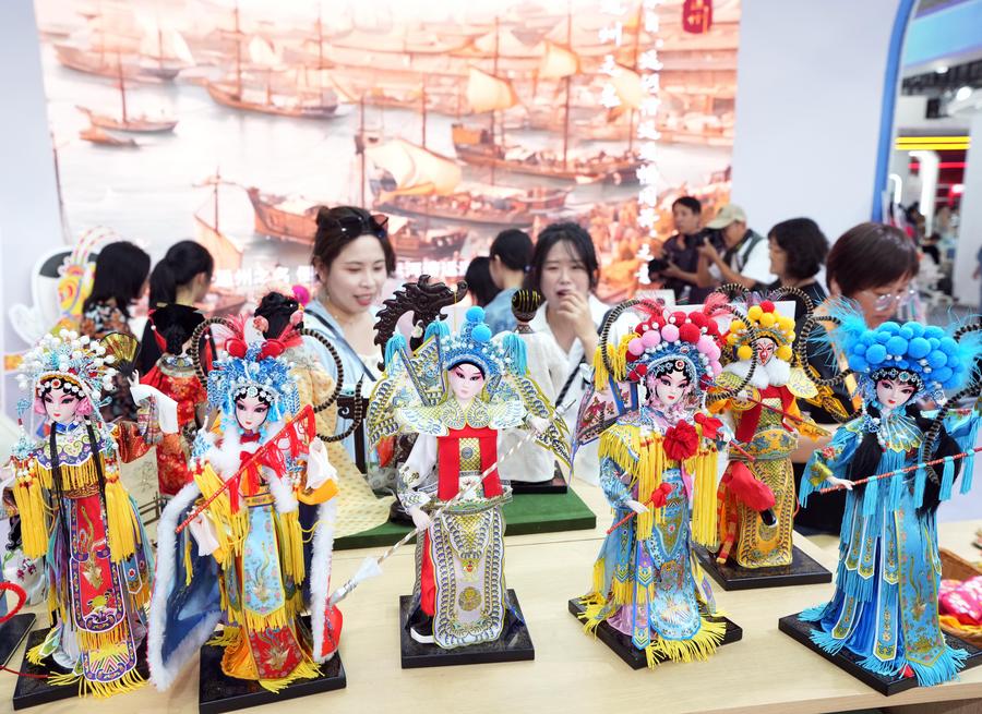 Visitors view cultural creative products at the exhibition stand of Tongzhou District of Beijing during the 2024 China International Fair for Trade in Services (CIFTIS) at the Shougang Park in Beijing, capital of China, Sept. 15, 2024. (Xinhua/Chen Yehua)