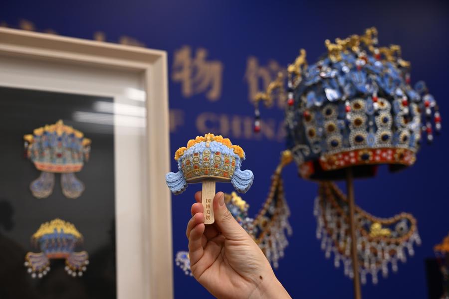 A person holds a "Queen's Crown"-shaped ice cream at the National Museum of China in Beijing, capital of China, Dec. 3, 2024. (Xinhua/Jin Liangkuai)