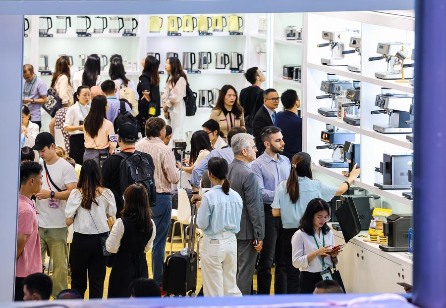 Buyers visits the exhibition section for household electrical appliances during the 136th China Import and Export Fair in Guangzhou, south China's Guangdong Province, Oct. 15, 2024. (Xinhua/Liu Dawei)