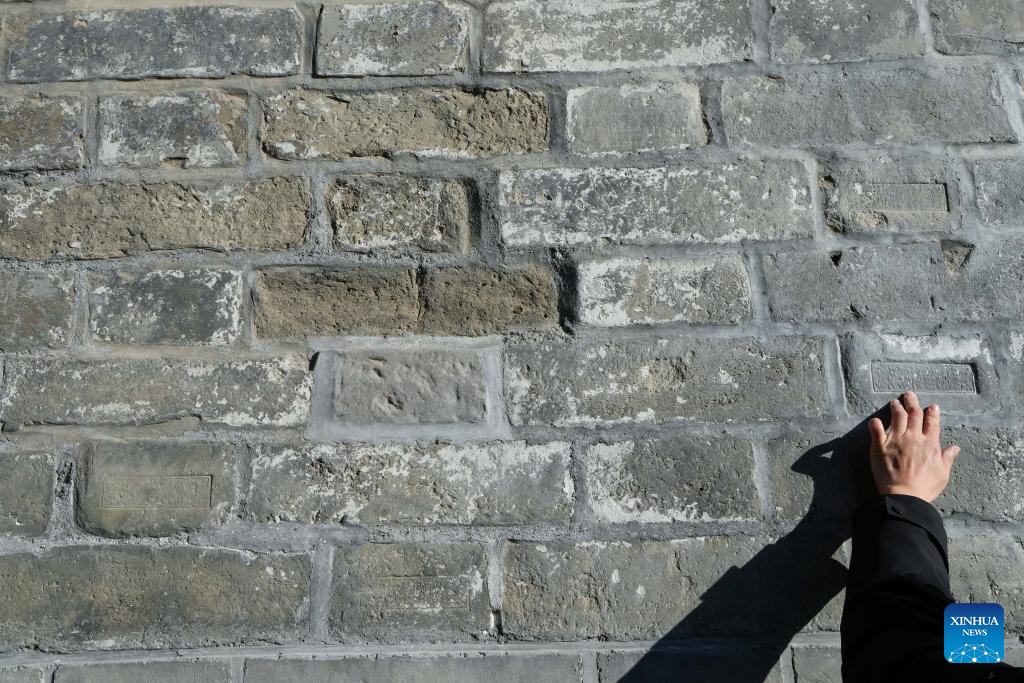 A visitor learns about an inscription on the Zhengyangmen Archery Tower in Beijing, capital of China, Dec. 26, 2024. (Xinhua/Ju Huanzong)