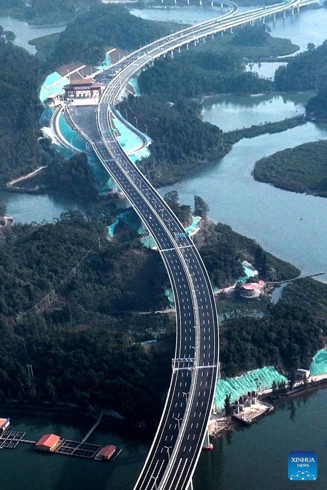 NANNING, Dec. 29 (Xinhua) -- Longmen Bridge, the longest cross-sea bridge in south China's Guangxi Zhuang Autonomous Region, opened to traffic on Sunday, slashing the time needed to travel between the Qinzhou Port and Fangchenggang Port from 1.5 hours to 25 minutes.
