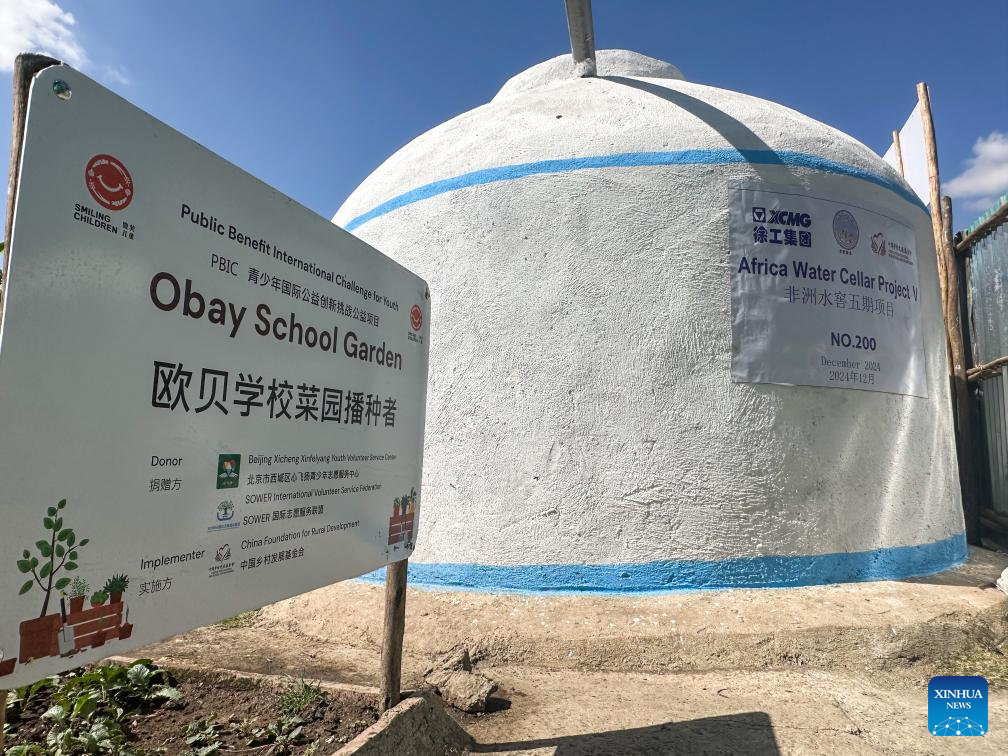 This photo shows a Chinese-aided water cellar in Dukem Town, about 33 km east of Addis Ababa, Ethiopia, Dec. 27, 2024. The China Foundation for Rural Development (CFRD), a national social organization dedicated to poverty alleviation, handed over these much-needed water cellar facilities to rural communities in central Ethiopia on Friday.(Xinhua/Michael Tewelde)