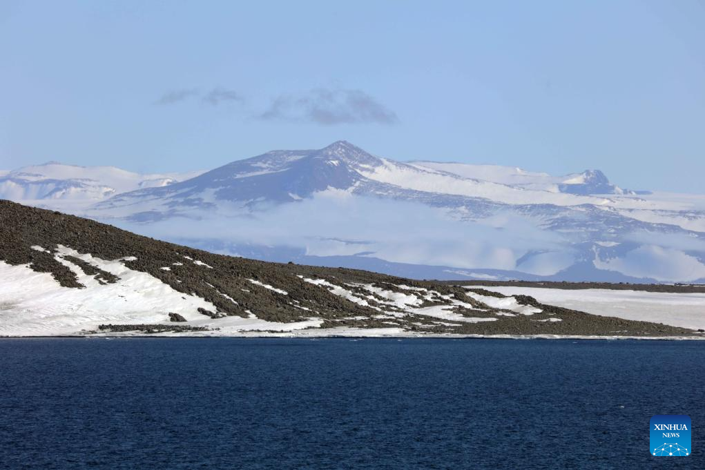 This photo taken on Dec. 25, 2024 shows a view of the mountains near China's Qinling Station in Antarctica. Chinese research icebreaker Xuelong 2, or Snow Dragon 2, and cargo vessel Yong Sheng, which are on China's 41st Antarctic expedition, arrived at China's Qinling Station in Antarctica on Dec. 25 and carried out unloading operations. (Xinhua/Huang Taoming)