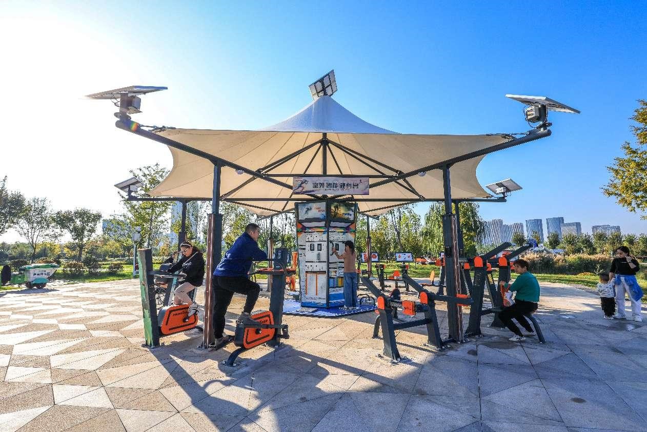 Over at Ritan Park, Beijing, sports facilities have been transformed into a fully equipped "outdoor smart gym." "These machines come with exercise guides and workout recommendations. The electronic screens show details like exercise duration and calories burned, which is incredibly helpful for fitness enthusiasts like me," said Chen, a "devoted fan" of smart fitness equipment.
